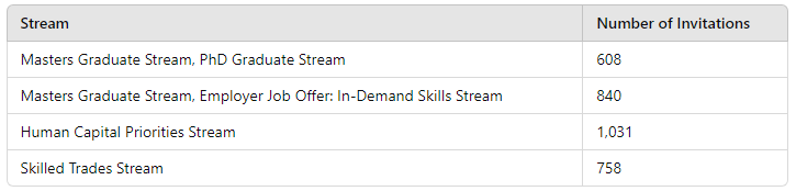 Understanding which jobs are eligible for Ontario's PNP helps you align your skills and career goals with the province's needs. This alignment increases your chances of being nominated for permanent residency. For instance, in 2023, here are the numbers of invitations issued for different streams, which can give us a better understanding of how to go forward: